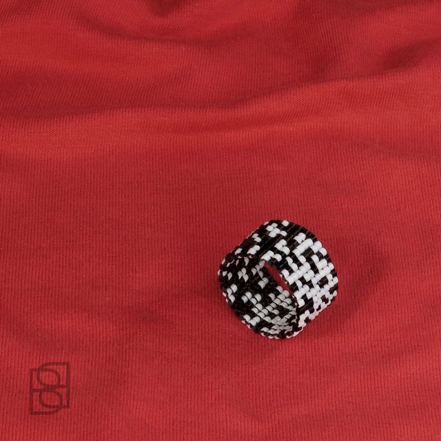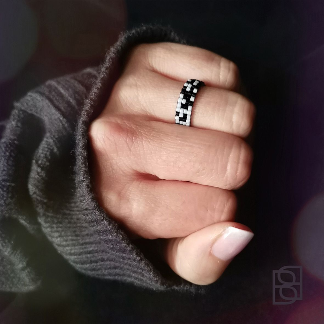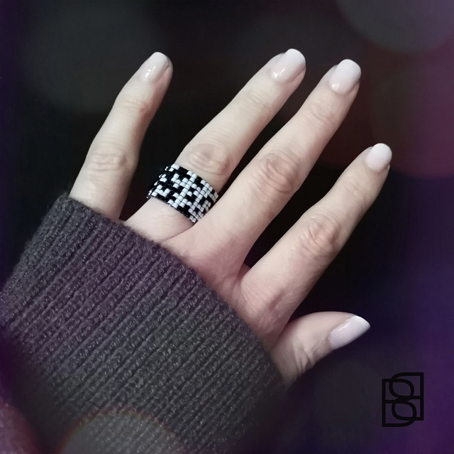 Playful black and white geometric pattern gives the ring a contemporary look as well as making a dynamic fashion statement.